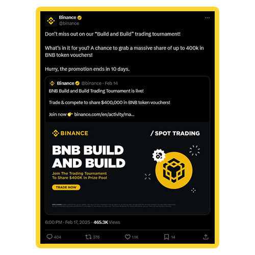 "Build and Build" originated in early 2022 as part of the rebranding of Binance Smart Chain (BSC) to BNB Chain, marking a shift toward greater decentralization and community-driven growth in the Binance ecosystem. Originally, BNB stood for "Binance Coin," but the rebrand redefined it as "Build and Build" to symbolize a philosophy of fostering innovation, ecosystem expansion, and collective participation in Web3, DeFi, and decentralized applications (dApps).
